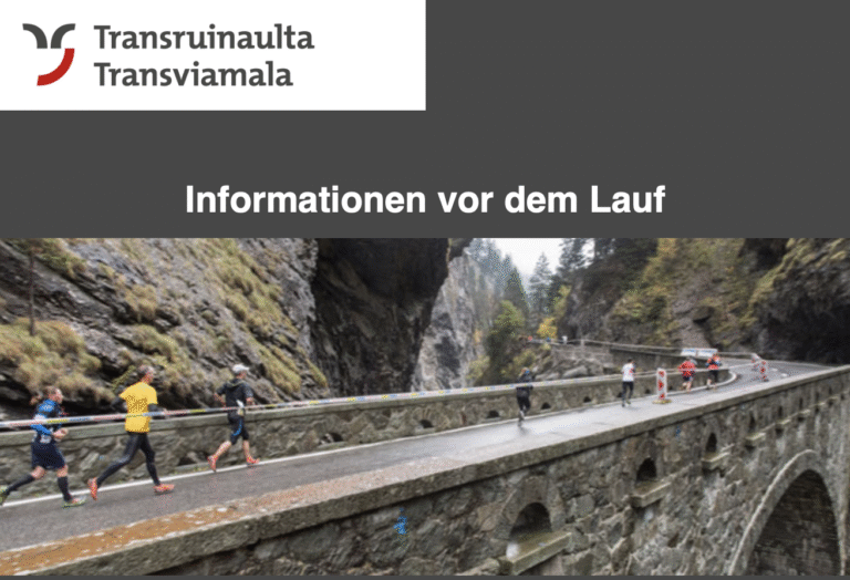 Alle gemeldeten Läuferinnen und Läufer mit einer korrekten E-Mailadresse haben eine E-Mail mit letzten Informationen erhalten. Wir haben uns ein Jahr vorbereitet, um Dir ein optimales Umfeld für ein nachhaltig wirkendes Sporterlebnis zu bieten. Was bei der 9. Transruinaulta- bzw. 21. Transviamala-Durchführung alles läuft, ist auf der Homepage ersichtlich. Das Wichtigste in Kürze: